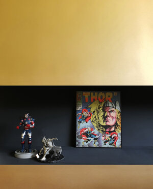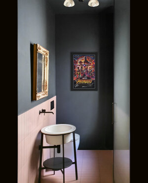 Emerge inoltre la forte identità del padrone di casa, impegnato attivamente all’interno delle produzioni cinematografiche hollywoodiane, da cui deriva la collezione di action figures, locandine e neon a richiamare il mondo Marvel.